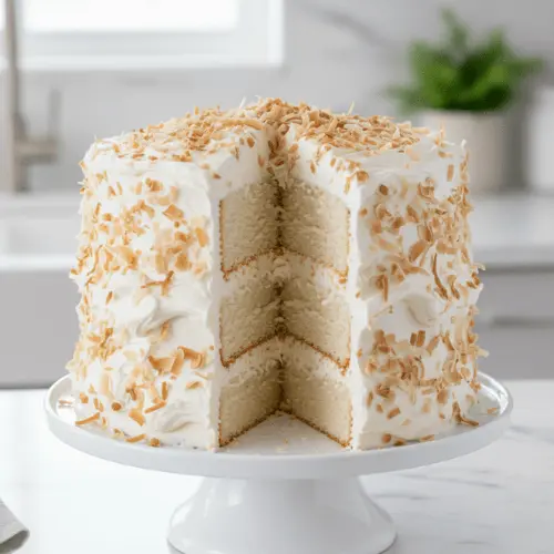 Calories: ~120kcal, Fat: 2g, Carbs: 27g, Protein: 0g8. The Tenderest Coconut Cake