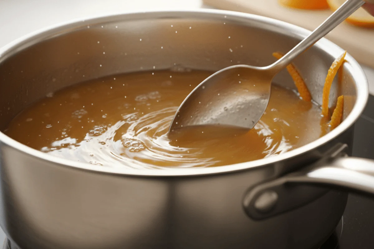 - Turn off the heat, fish out the orange peel or cinnamon stick. Let it cool down in the pot—it'll get even thicker.