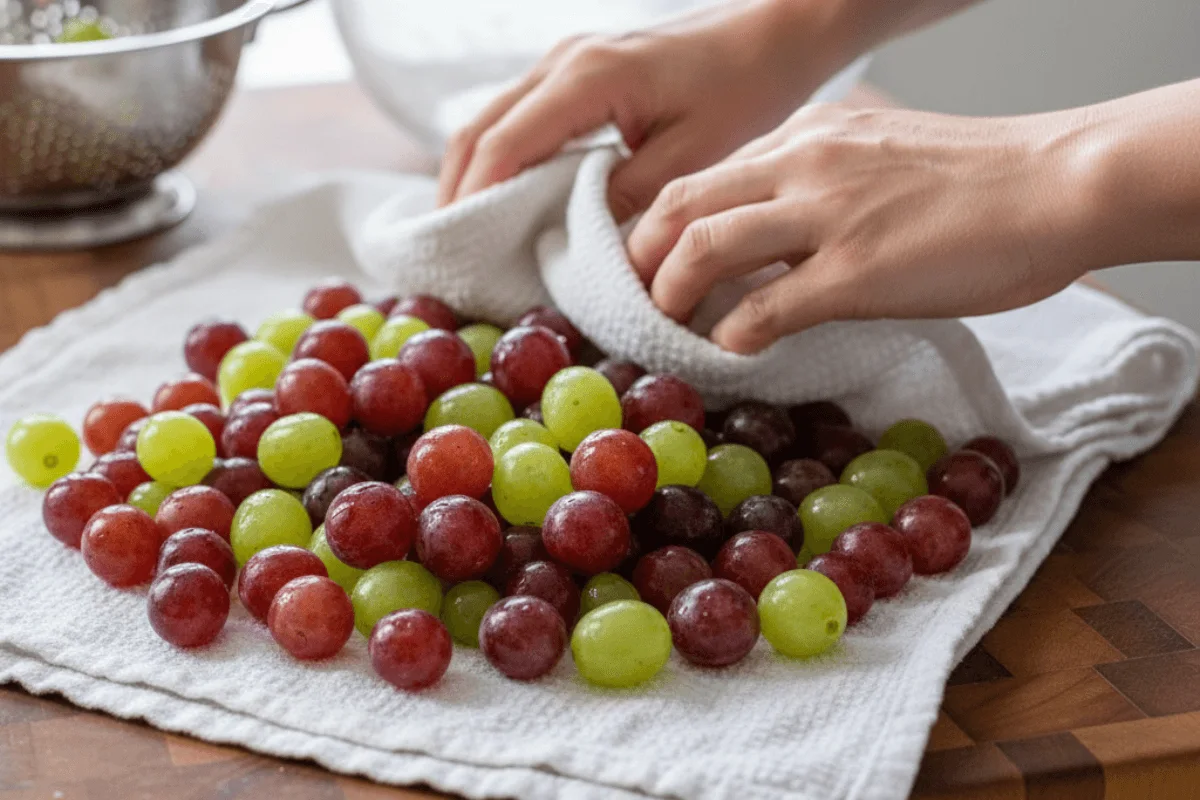 - Rinse grapes, pat 'em bone-dry (trust me, wet ones = disaster soup).